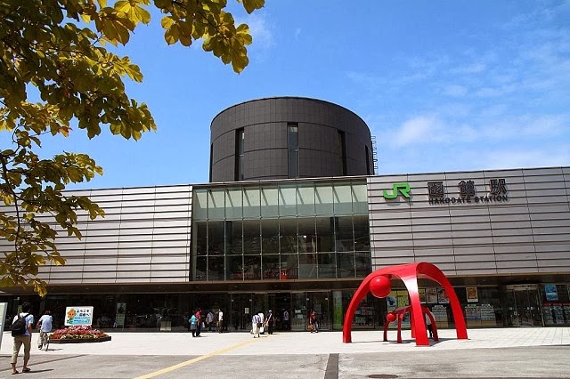 每次見到小巧的函館火車站, 都覺得很親切, 門外火紅的雕塑仍在......歡迎我們的再來.....
