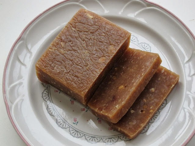 質感有點像未煎的年糕, 但很油潤, 奇怪的是沒太重的牛油味, 反而有點椰子味, 裏面有些碎果仁, 似是松子吧........